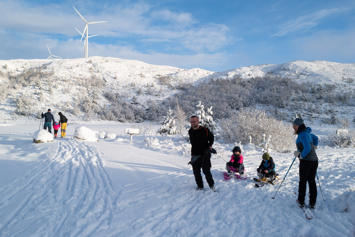 Det er berre ti minutts kjøretur så kan du spenna skiene på deg ved Olstjødna og starte skituren der, eller dra ungane opp den lange bakken på akebrett, og ha ein herleg vinterdag utan å reise langt.
